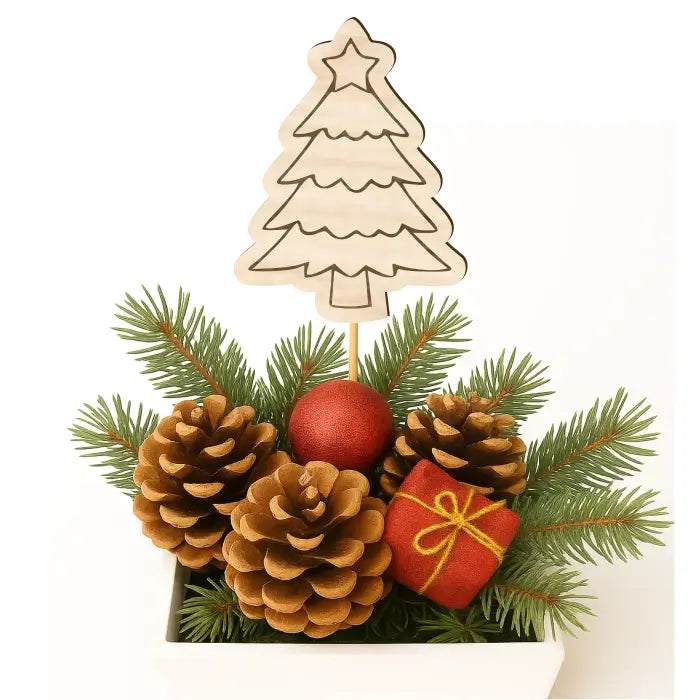 🪵 Pečlivě zpracovaný zápich z kvalitní překližky. Díky klasickému motivu a čistým liniím se zápich do květináče stromeček hodí do truhlíků, květináčů i k adventnímu věnci. Je to zkrátka vkusný kousek pro vaši zimní dekoraci.